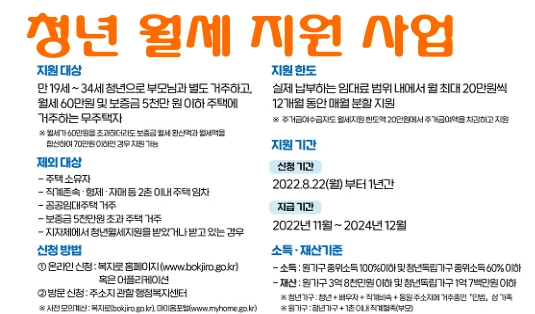 | 서울시 청년 월세 지원 사업 | 8월 22일부터 접수 시작 |