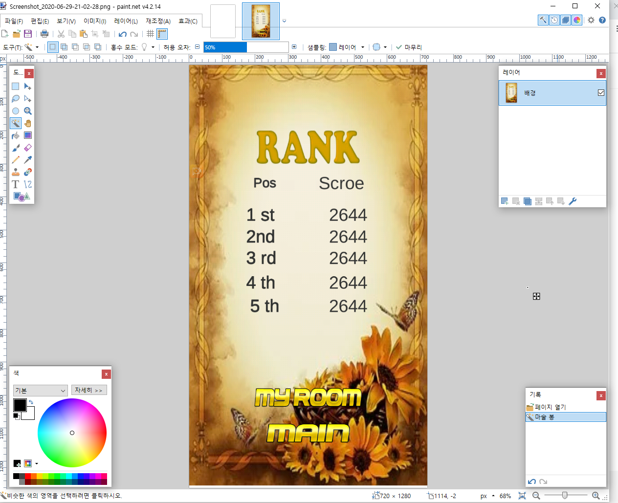 5. 텍스트 입력 : 페인트 넷 장점 중 하나가 레이어 작업이 가능하다는 점입니다. 레이어 작업이 불가능한 그림판 편집 같은 경우 원하는 작업이 되지 않으면 처음부터 다시해야되는 단점이 있습니다. 하지만 페인트 넷은 레이어를 추가한 다음 그 상태로 편집해서 다시 병합할 수 있습니다.