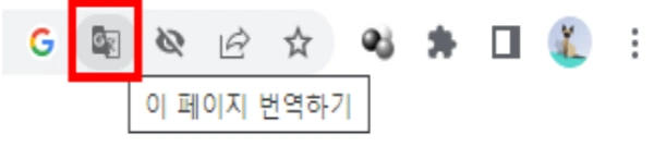 3. 크롬 자동 번역 기능. 만약 해외 사이트 등에 들어가게 되면 자동으로 번역을 사용할 수 있습니다. 아래와 같이 이 페이지 번역하기를 클릭하면 원하는 언어로 자동 번역이 됩니다. 보통 기본 설정된 언어(한국어 번역)로 번역됩니다.