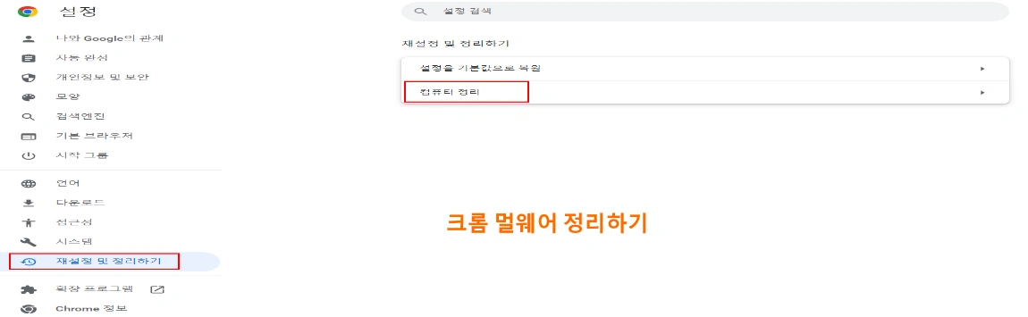 크롬은 자체적으로 컴퓨터를 관리하는 기능을 가지고 있기 때문에 문제가 될 수 있는 것들을 차단합니다. 하지만 간혹 악성 이메일 등이나 낯선 페이지에 들어갔을 경우 멀웨어가 설치될 수도 있습니다. 멀웨어는 꼭 크롬이 아니더라도 컴퓨터에 문제를 일으킬 수 있으므로 지우시기를 바랍니다.
