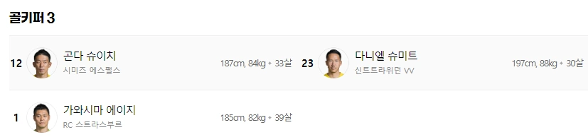 골키퍼 곤다 슈이치, 다니엘 슈미트, 가와시마 에이지