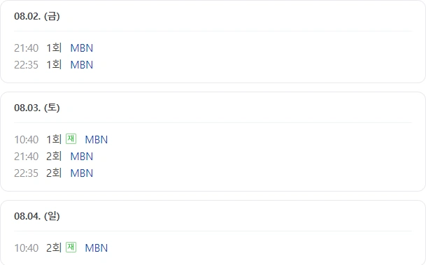 MBN과 MBN 플러스 채널에서 방송되지만 특이하게 웨이브, 티빙, 넷플릭스, 왓챠 등 현존하는 국내 OTT에서 모두 다시보기 하실 수 있습니다.