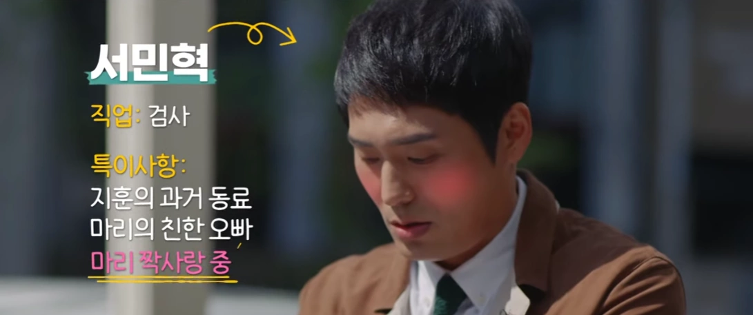 서민혁 역 배우 최대훈 : 백마리를 짝사랑하고 있는 강남 키드 검사. 검사 동기였던 천지훈을 만나기만 하면 유리 멘털이 되고 만다.