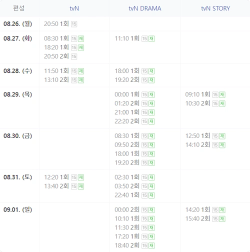 - 편성 채널 tvN, tvN Drama, tvN Story